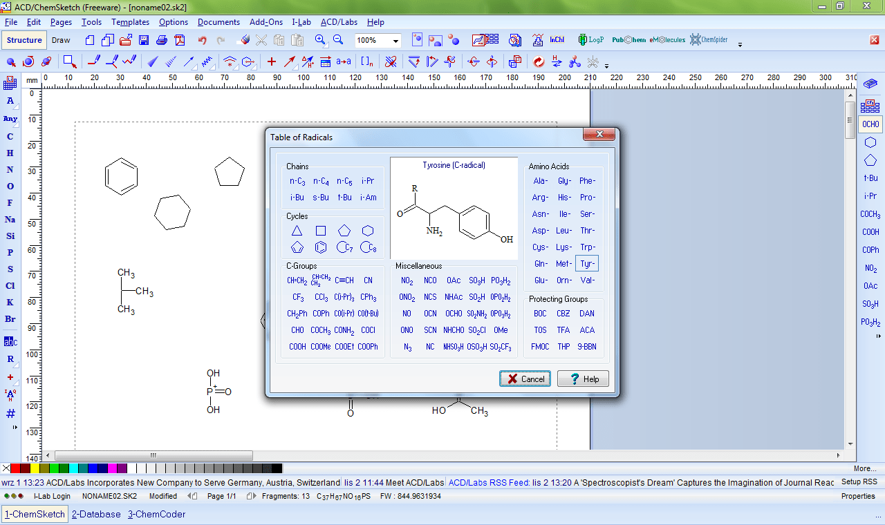 Ideje Chemsketch Ke Sta¾Ení Zdarma. Vytvořené struktury lze samozřejmě snadno vytisknout nebo exportovat do formátů pdf, wmf, bmp, tiff a dalších. Acd/chemsketch je kvalitní nástroj pro pohodlné kreslení různých chemických struktur a vzorců.